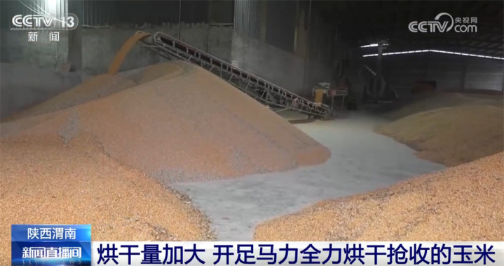陕西渭南:烘干量加大 开足马力全力烘干抢收的玉米