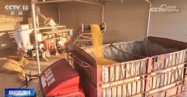 趁着降雨间歇期,在介休市宋古乡洪善村的田间地头,一台台履带式收割机在泥泞的玉米地里推进,一排排玉米秆被整齐吞入机械,随后,金黄的玉米粒如瀑布般倾泻而出。而在村里的烘干中心,烘干塔正满负荷运转,金黄的玉米在机械化流水线上流动,烘干后通过传送带直接送入标准化粮仓,实现了“即收即烘即储”的无缝对接。